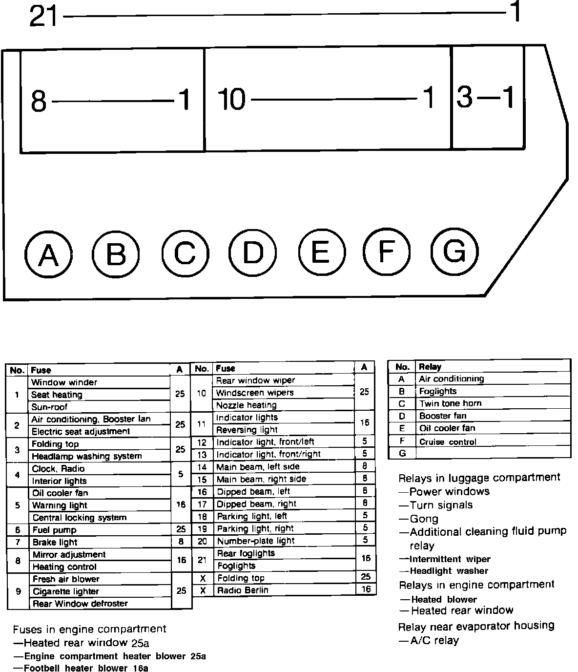 Also included on Fuse Assignments And Positions, but not included on Main Fuse/Relay Panel are engine compartment fuses and additional luggage compartment fuses.