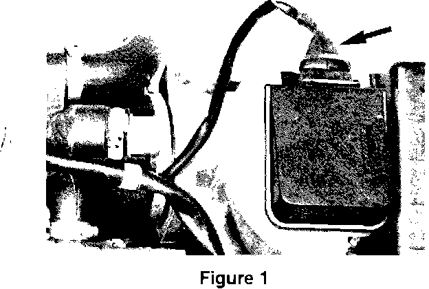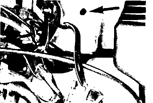 on right shock absorber mounting slightly forward (arrow in Figure 7). Make sure vent hoses are properly installed on bracket at shock absorber mounting and on bracket in front of air flow meter. The small diameter hose must be routed below the large diameter hose, 9. Reinstall air filter and filter housing cover.