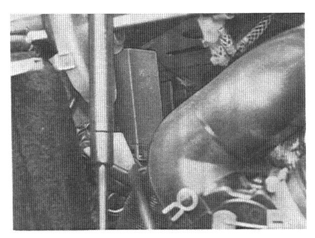 On the right inside the luggage compartment near the lid hinge.