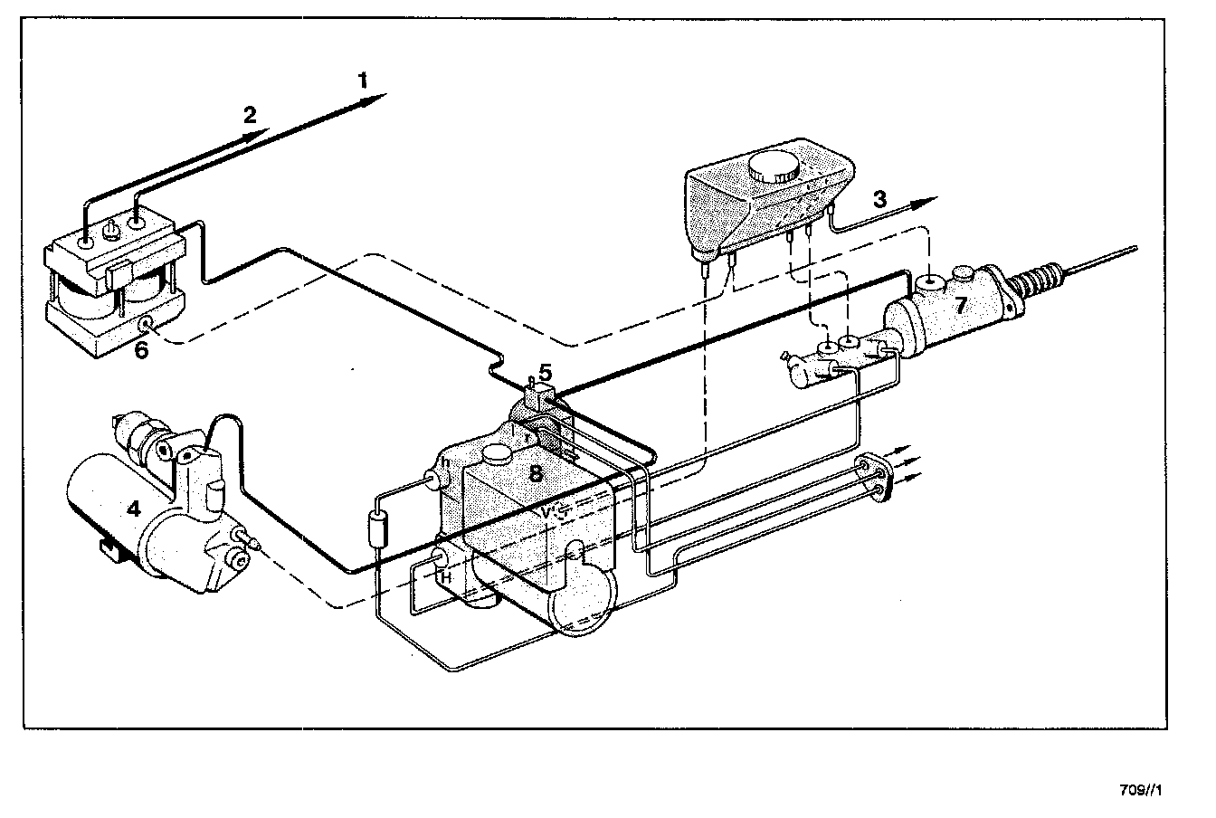 1. Brake fluid change (brake, lock control and clutch) / Bleed brake master-cylinder circuits*.