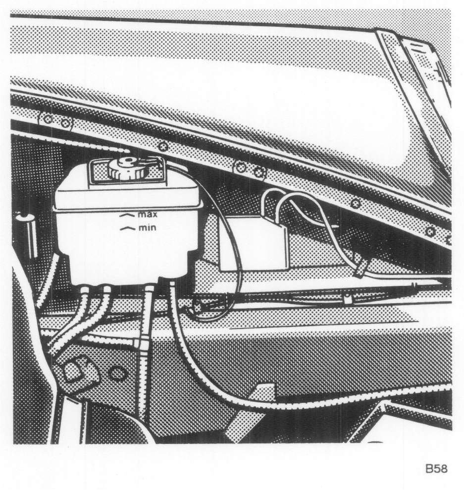 - The brake fluid reservoir is subdivided into chambers approx. as from the middle section downwards.