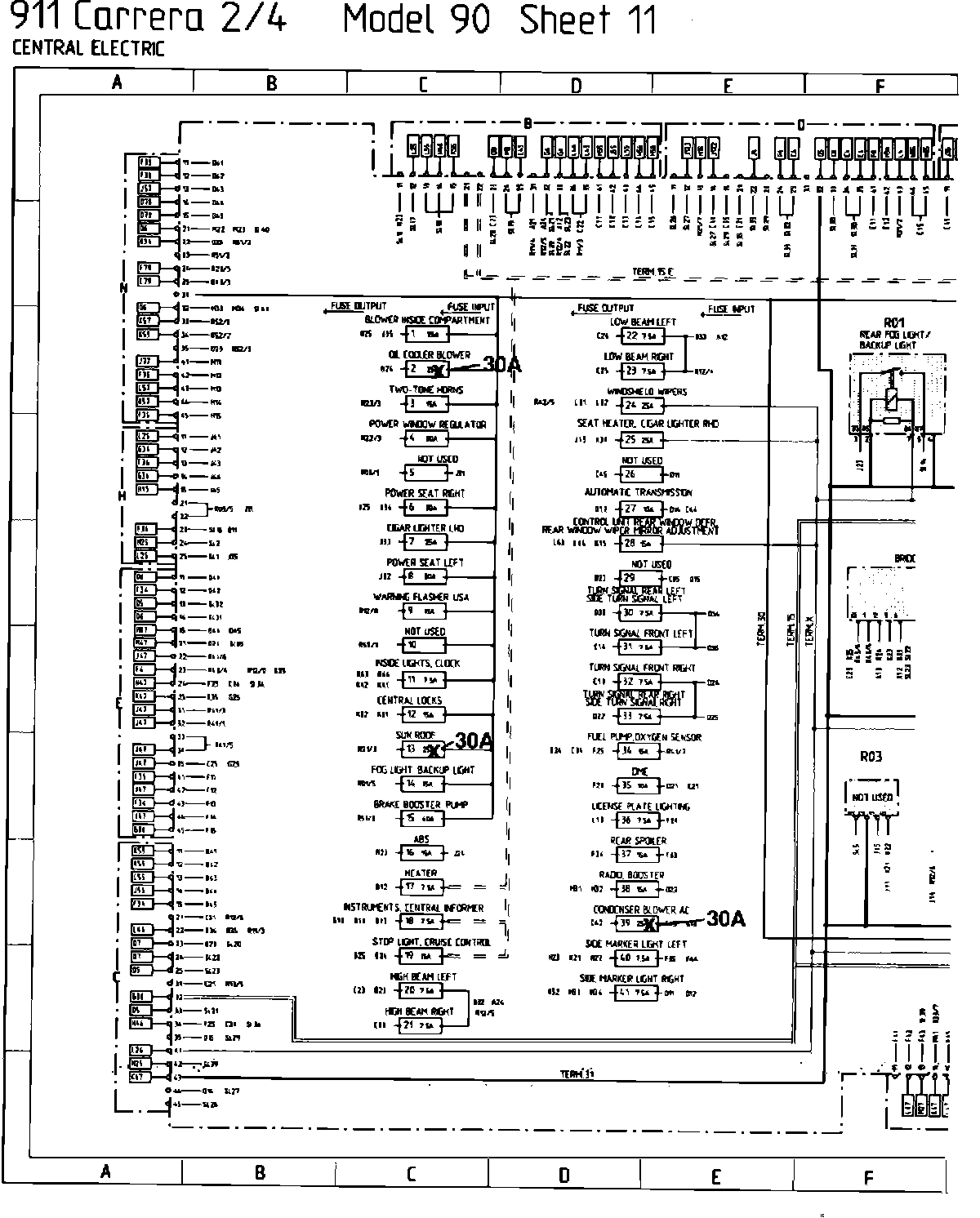 Please correct your Repair Manual wiring diagrams model year '89 and '90 911 Carrera 2/4, Sheet 11 (see figure on next page). Also the 1990 Wiring Diagram Book (Part Number PNA 000 081) fuse location tab and 911 Carrera 2/4, Sheet 11.