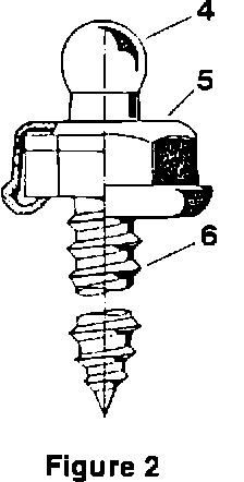 The lower part (Figure 2) consists of a ball-head (4) hexagon head (5) and threaded piece (6). In the snapped state the three tension springs surround the ball-head of the lower part and guarantee optimal retainment.