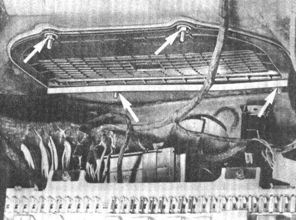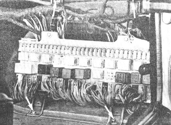 5. Remove mounting nuts and screws from central fuse/relay plate. Lower central fuse/relay plate.