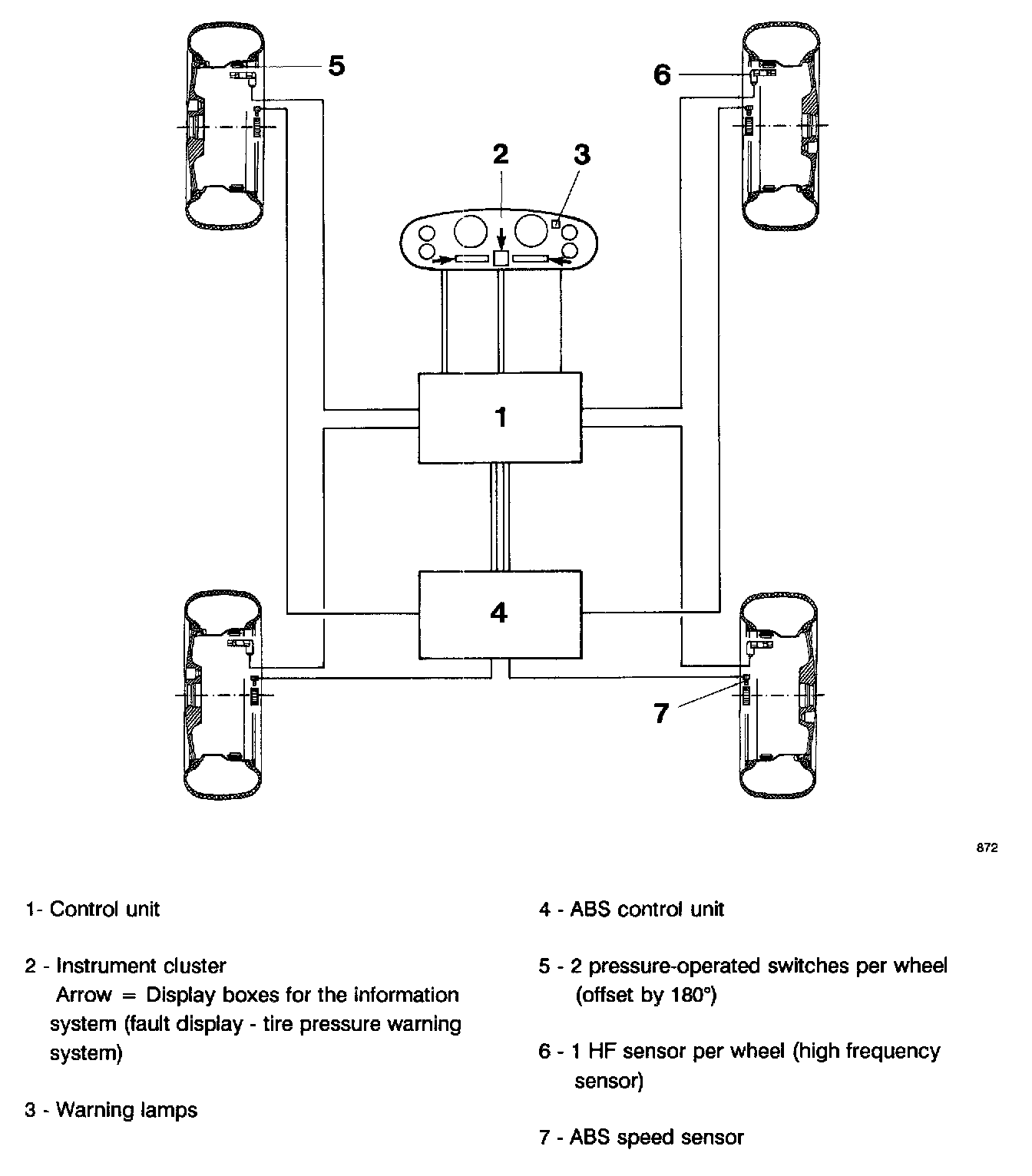 - Read out tire pressure loss event memory (from control unit version R02 on (introducing during 1991 model year).