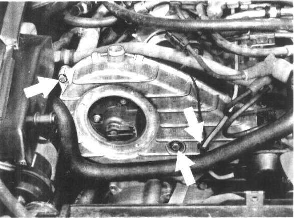 3. Unscrew and take off distributor caps and toothed belt cover upper section on righthand side.