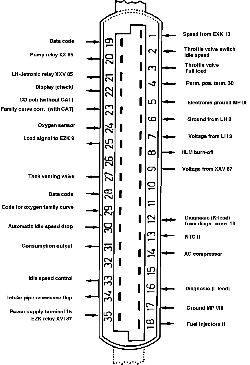 1. With ignition off, disconnect multiple pin plug from ECU.