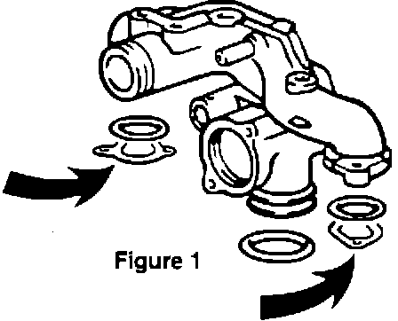 Manufacturing tolerances required installation of additional gaskets between the thermostat housing and cylinder heads (arrows in Fig. 1) on approximately 1500 engines.