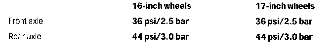 --> The tire pressure must never fall below the tire pressure shown.