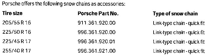 Porsche offers the snow chains shown as accessories.