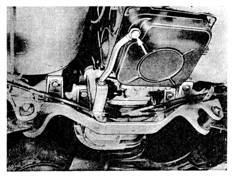 21. Remove two bolts from transmission mounts and two bolts holding rear axle cross member to frame.
