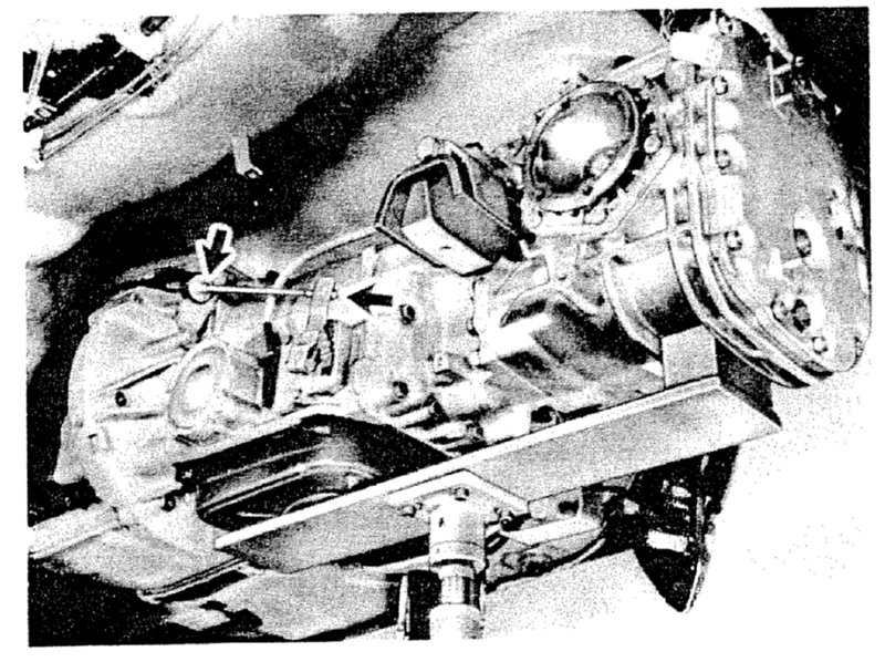 13. Mount transmission on cross member and tighten all bolts to specified torque.