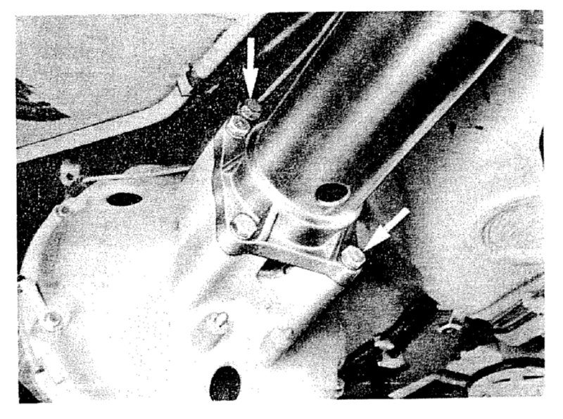 Note: When lowering transmission, be careful that check valve for air injection does not damage brake line.