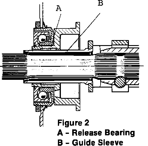 A new version clutch release bearing and guide sleeve is now available. The new bearing has a polyamide insert which contacts the guide sleeve. The inner diameter of the release bearing and the outer diameter of the guide sleeve are 2 mm smaller than the former version. The new version release bearing and guide sleeve have been used in production since September 9, 1992, as of VIN 92 4PS 820095. The new version release bearing and guide sleeve can be installed in all Porsche 928's from model year 1987-on.