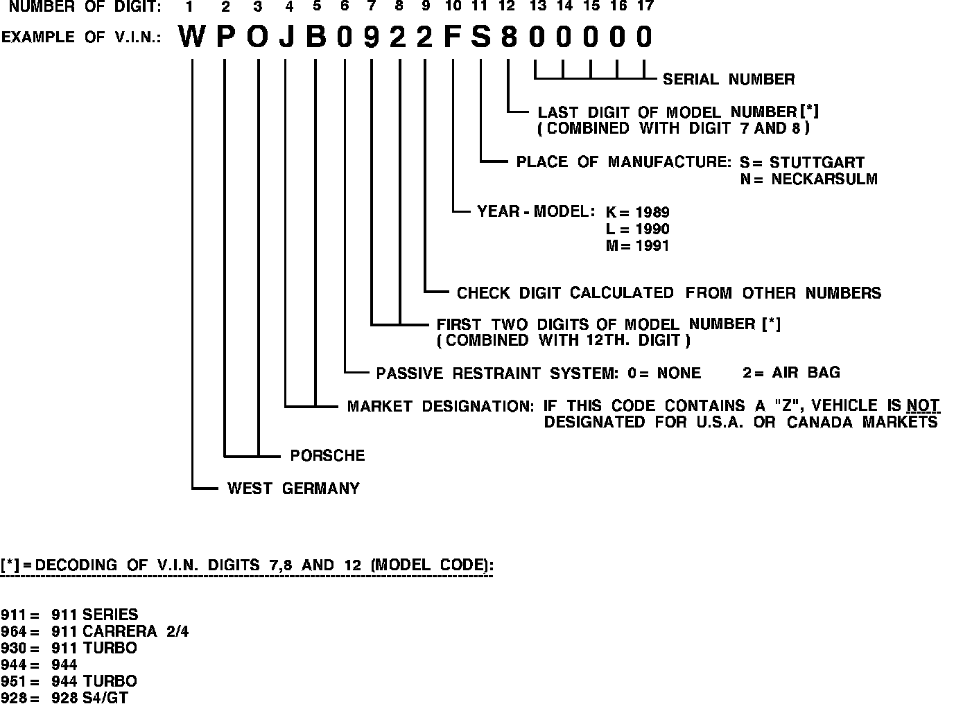 The vehicle identification number (V.I.N.) can be decoded as shown in Fig. 9.