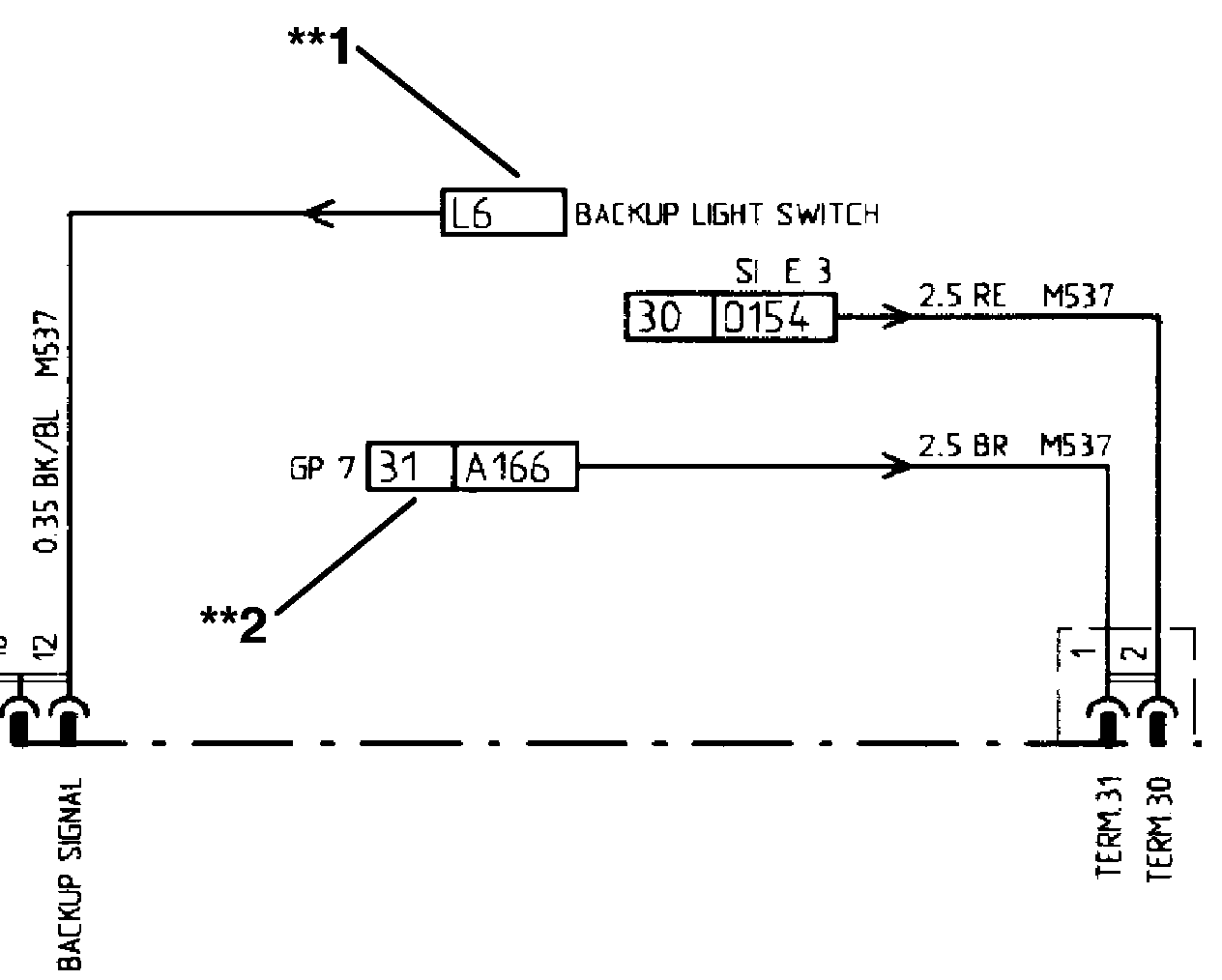 Note**1 Wire coming in (Continuation) from Backup Light Switch, at coordinate location L6.