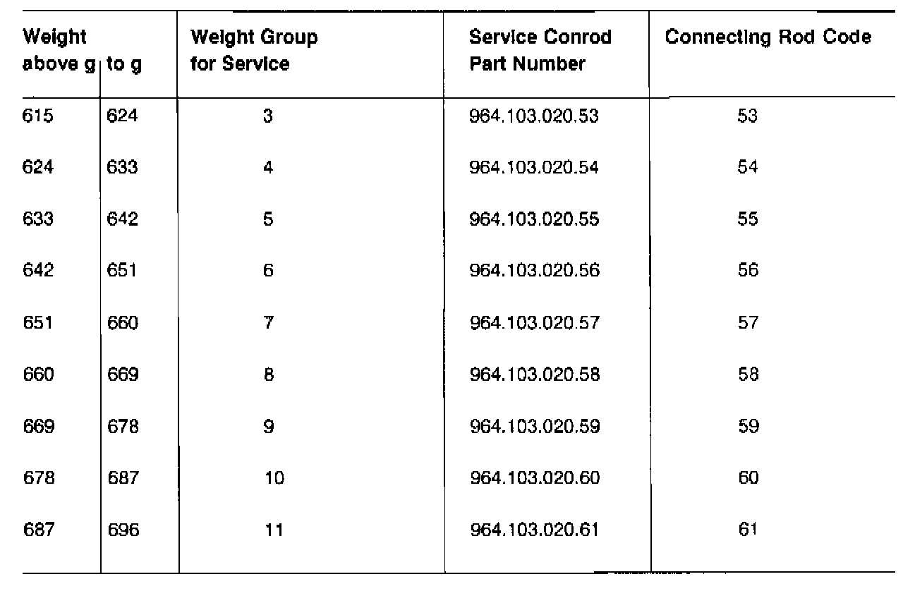 - Only connecting rods, the difference in weight of which does not exceed 9 grams, may be installed in one engine. Weigh a complete connecting rod, but without bearing shells, to determine a weight group.