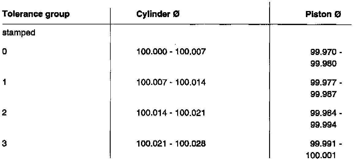 Diameter SpecificationsCylinder-to-piston clearance 0.02 - 0.03