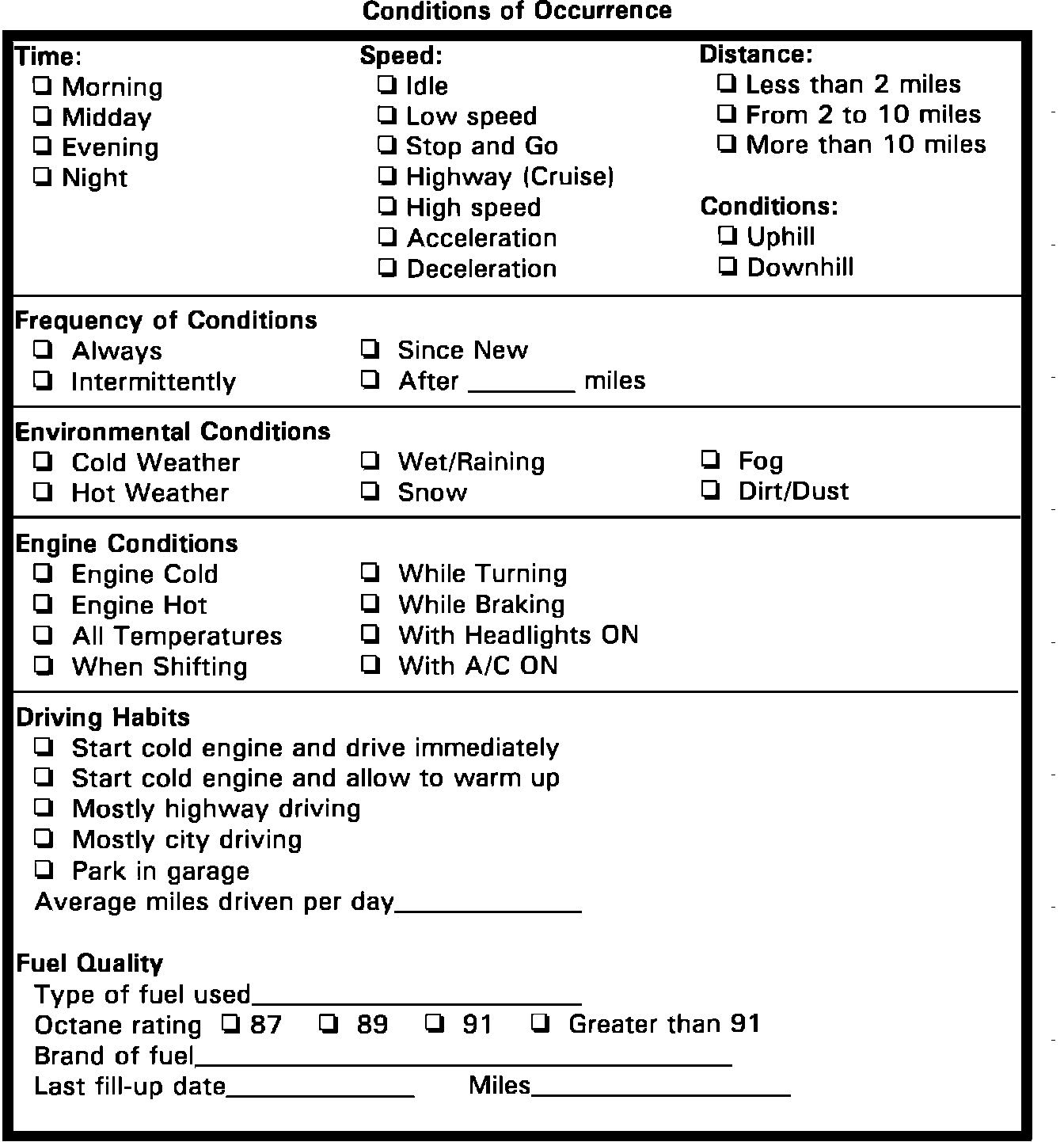 Driveability Worksheet 1: