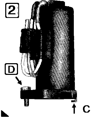 3. Install interference suppression filter. Make sure interference suppression filter clip (Figure 2, arrow C) engages properly on fuse/relay board carrier plate. Screw captive bolt (Figure 2, arrow D) into clip-nut. Wiring and wiring tie strap end should be pushed away from interference suppression filter to ease installation.