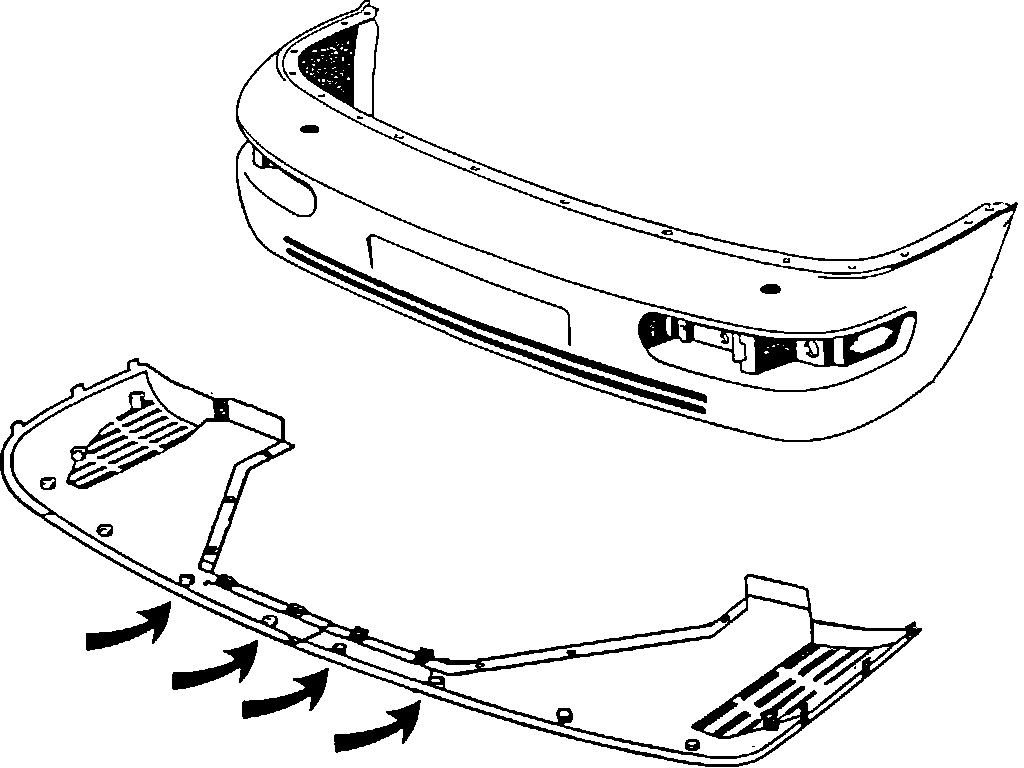 2. Remove the four front lower panel sheet metal screws as indicated in the illustration.