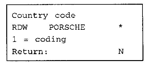 The Country code menu displays the coded version in the top left corner, e.g. RoW; the center displays Porsche or Workshop, depending on where the system has been coded. The asterisk on the right is displayed for versions that include the interior lights in the alarm emission.