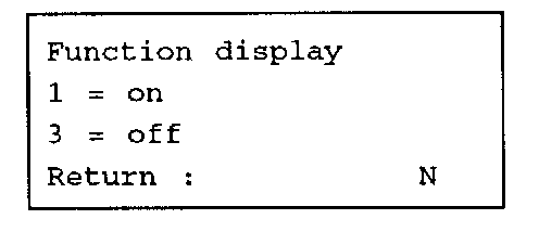 If the function display is turned on, the doors are locked and the LEDs light up permanently. The "on" display flashes on the tester. If the function display is turned off again, the LEDs are turned off as well. The doors are unlocked again when the user returns to the menu.