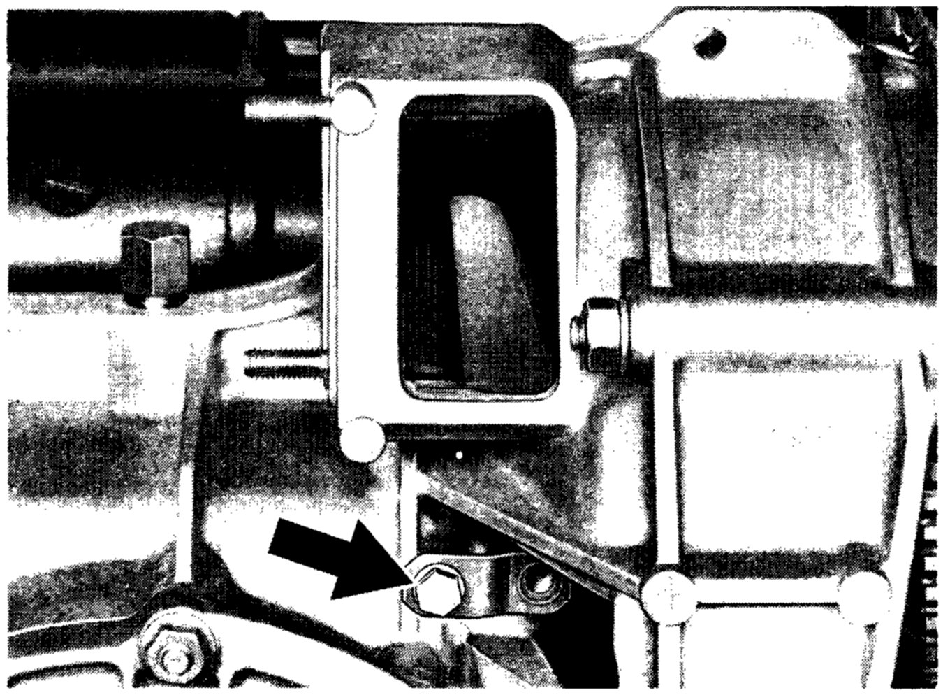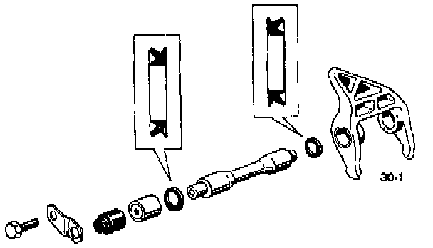 2. Undo the hexagon head screw. Remove the bracket and cap. Pull out the clutch release shaft with hexagon head screw M 6 x 40.