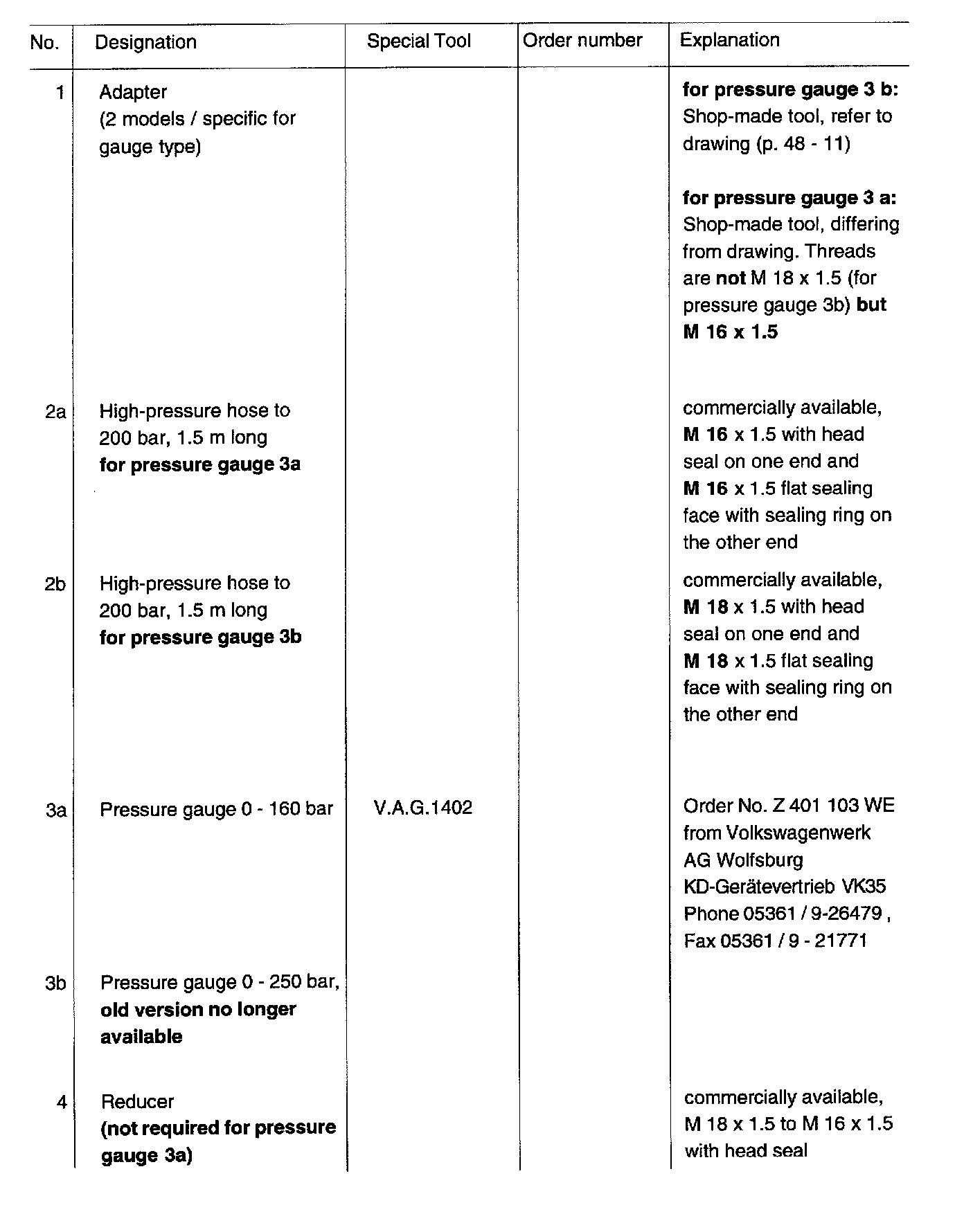If the old pressure gauge No. 3b is used (see below), make sure the high-pressure hoses No. 2b and No.5 are connected to the pressure gauge In the correct positions.
