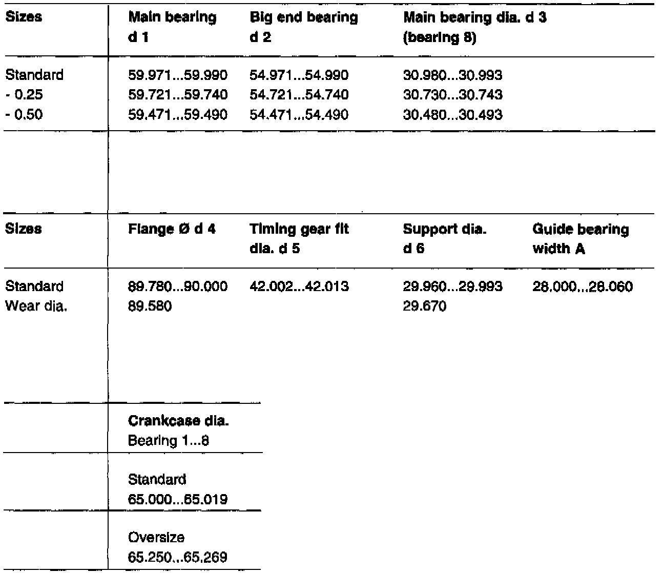 Crankshaft, Standard And Repair Dimension Specifications
