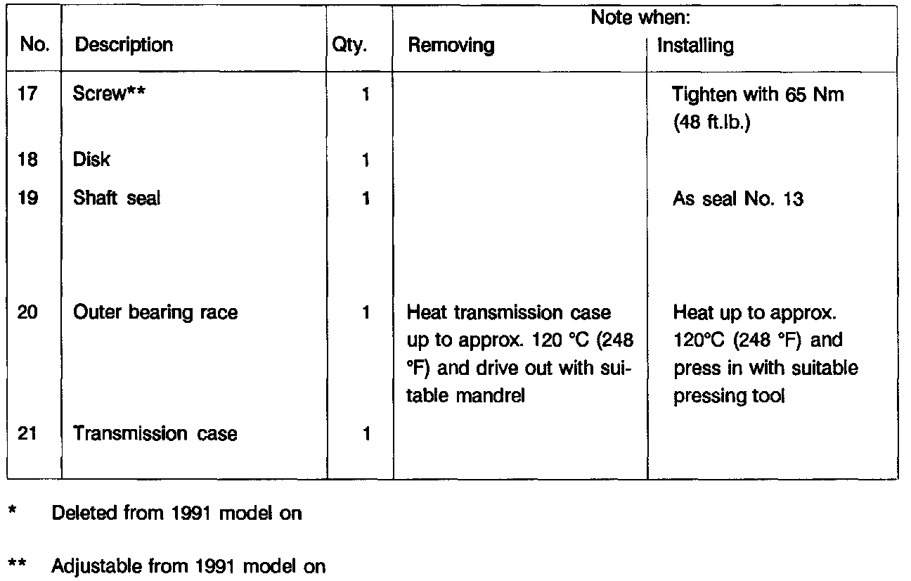 NOTE: From the 1991 model on, the counter bearing on the lateral limited slip differential is adjustable.
