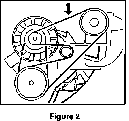 4. Measure the belt tension at the arrow location shown in Figure 2. Belt tension is set to 4.0 scale units.