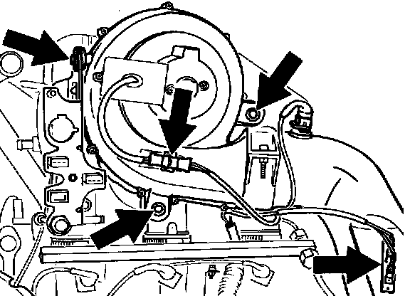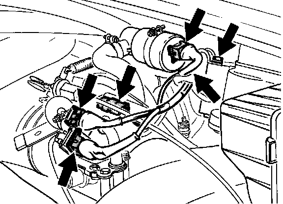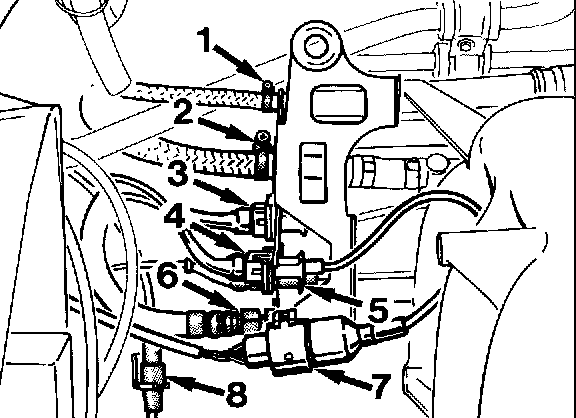 9. Undo bleeding hoses. These can also be disconnected after lowering the engine-transmission assembly.