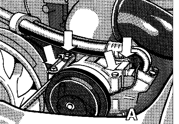 10. On vehicles with air conditioning system, dismantle the compressor from the bracket and put down on a suitable surface at the left rear fender with connected hoses.