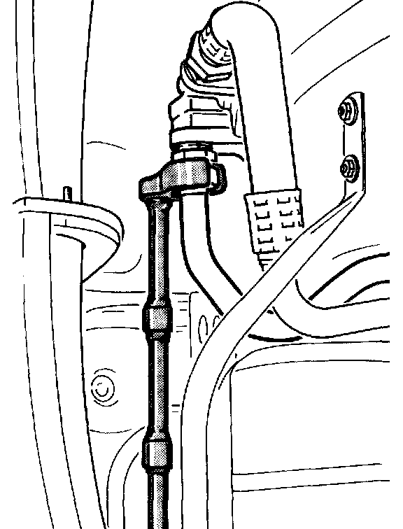 Note: In order to avoid discharge of fuel when the fuel tank is full, connect disconnected hose with special tool connecting hose 9507 Order No.000 721 950 70 and clamp off the connecting hose with a standard commercially available hose clamp.