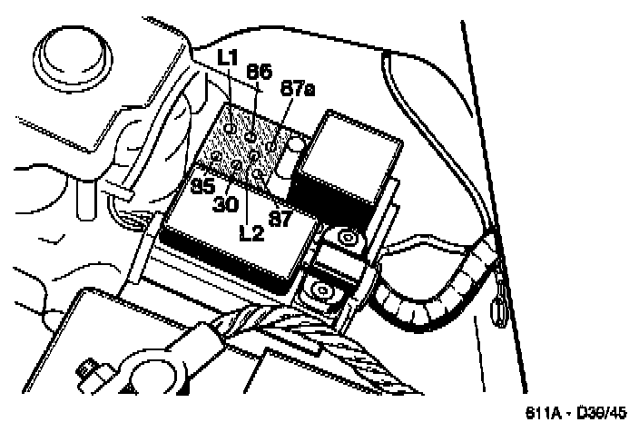 4. Check that the power supply is present at terminal 87 of the relay base (car's electrical system voltage) when the valve relay is pulled off. Desired reading: approx. 12 Volt (car's on-board system voltage).