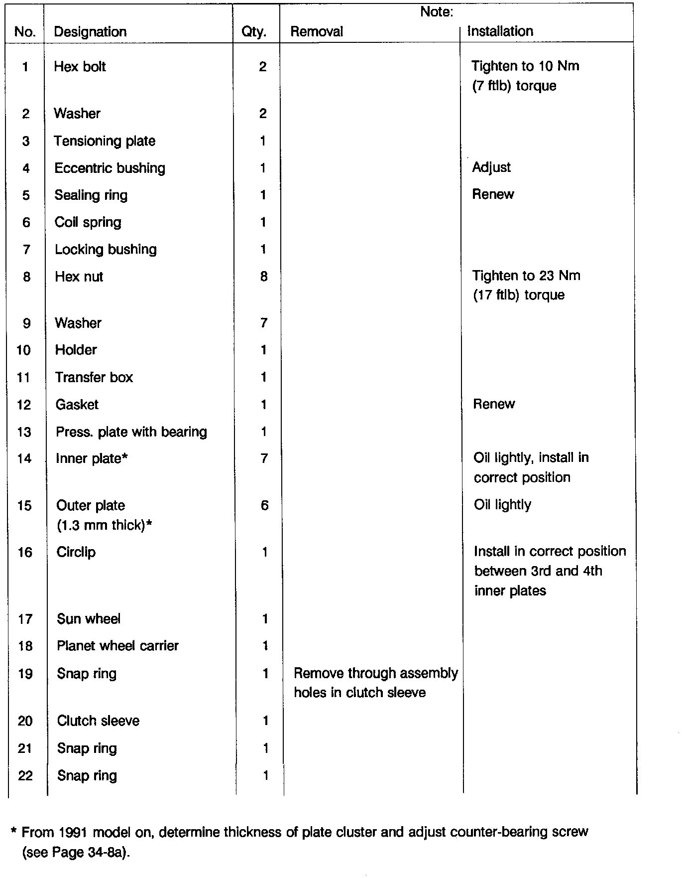 - If the plates for the front-rear lock are renewed, the plate cluster thickness must be determined.