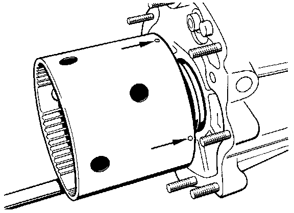 NOTE: The transfer case is in the correct position if it can be slid up completely by hand. If there is a gap of approx. 6 mm between transfer case and intermediate housing, the teeth of the pressure plate have not engaged into those of the coupling sleeve.