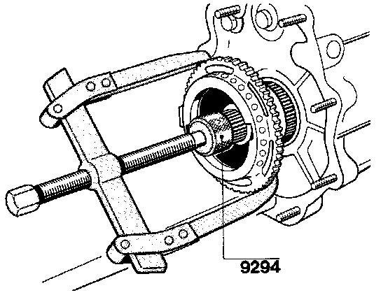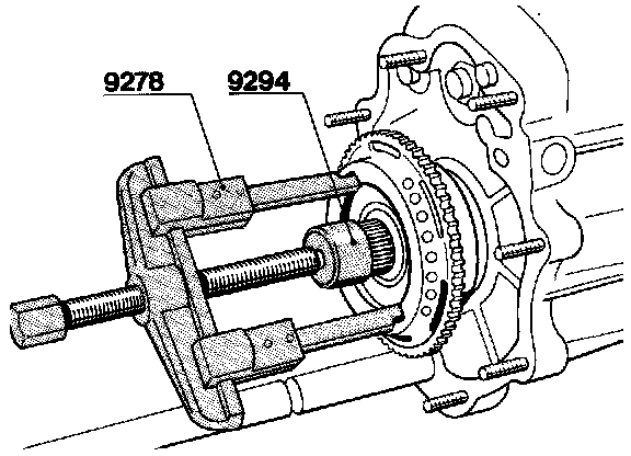 - Pull out Inner bearlng race (No. 28) over the bearing carrier with Special Tool 9294 and a suitable puller.