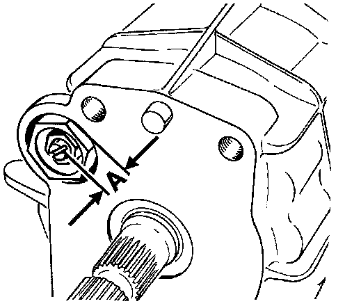 NOTE: Perform measurement only after completion of all preliminary work. The sealing bellows (A) in the transmission case remains installed for measurement on the longitudinal and transverse locks.
