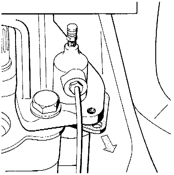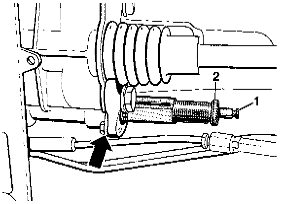 2b. Measure the longitudinal lock. Secure the measuring cylinder with holding plate for the slave cylinder (arrow) on the transmission.