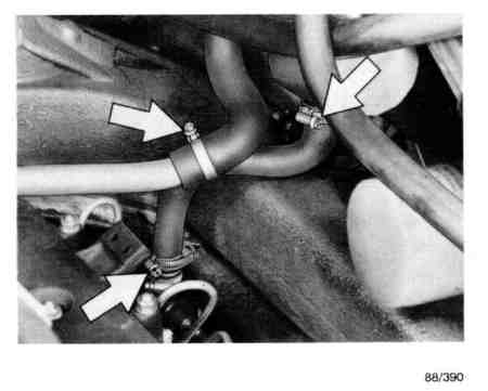 Undo the heating hoses at the heat exchangers and pull off.