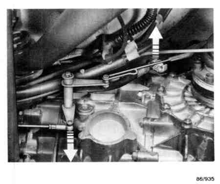 Raise the car, undo the hexagon head screw in the shift rod coupling and pull away from the inner shift rod in the gearbox.