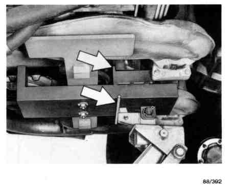 Remove the safety strap and disengage the accelerator tie rod. Unclip the line for the clutch operating cylinder.