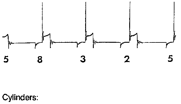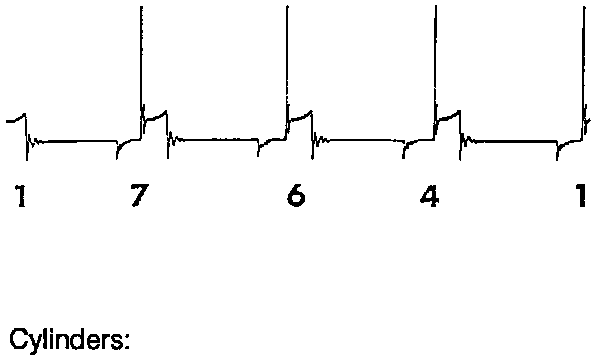 To display a secondary image at the oscilloscope, the engine tester must be switched to 4 cylinders, since the car's ignition system is divided into 2 separate ignition circuits. Firing order: 1-3-7-2-6-5-4-8