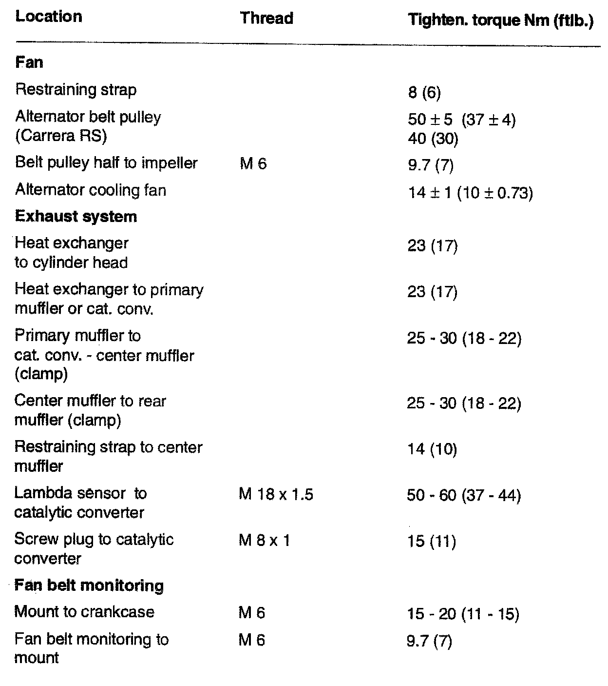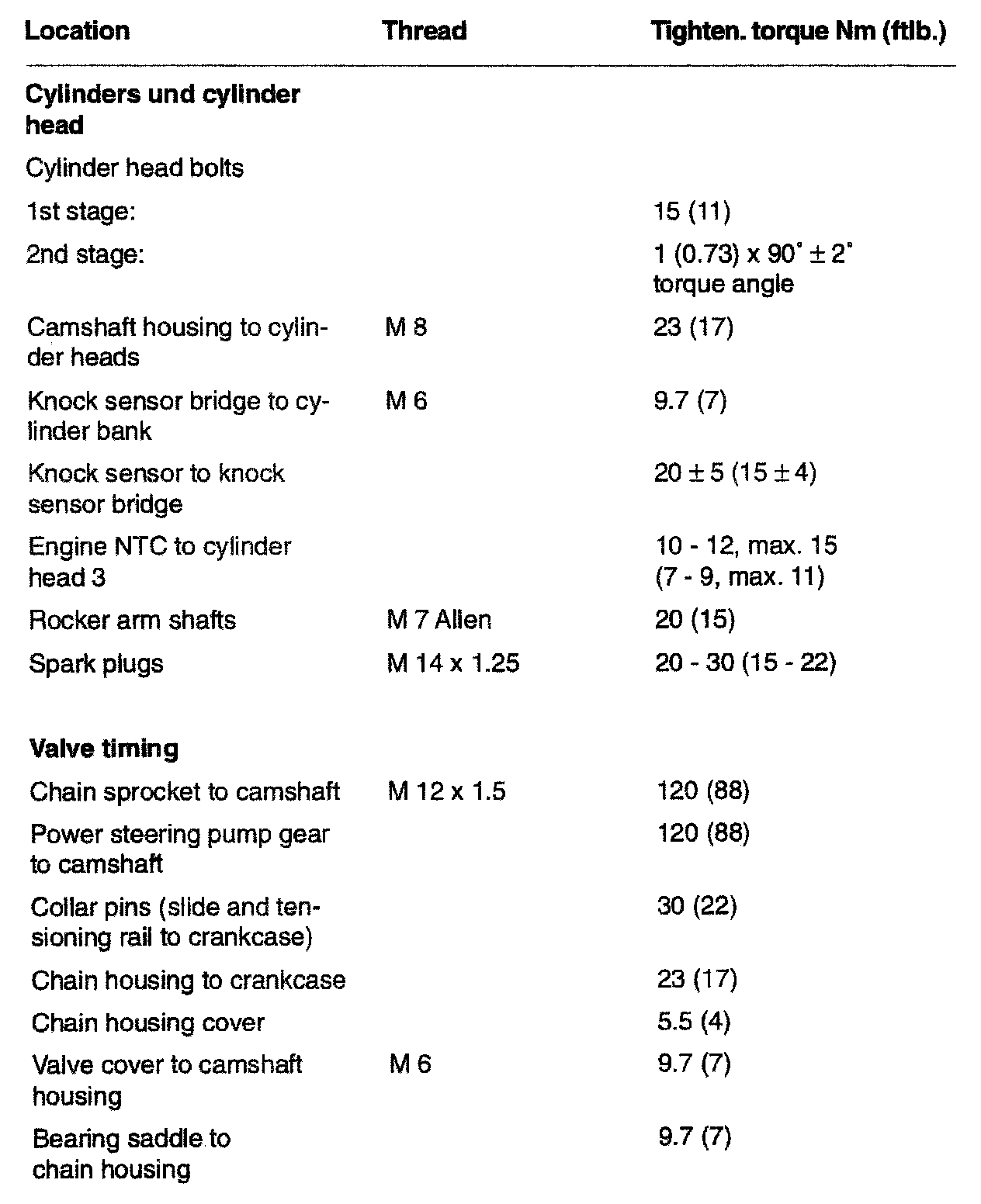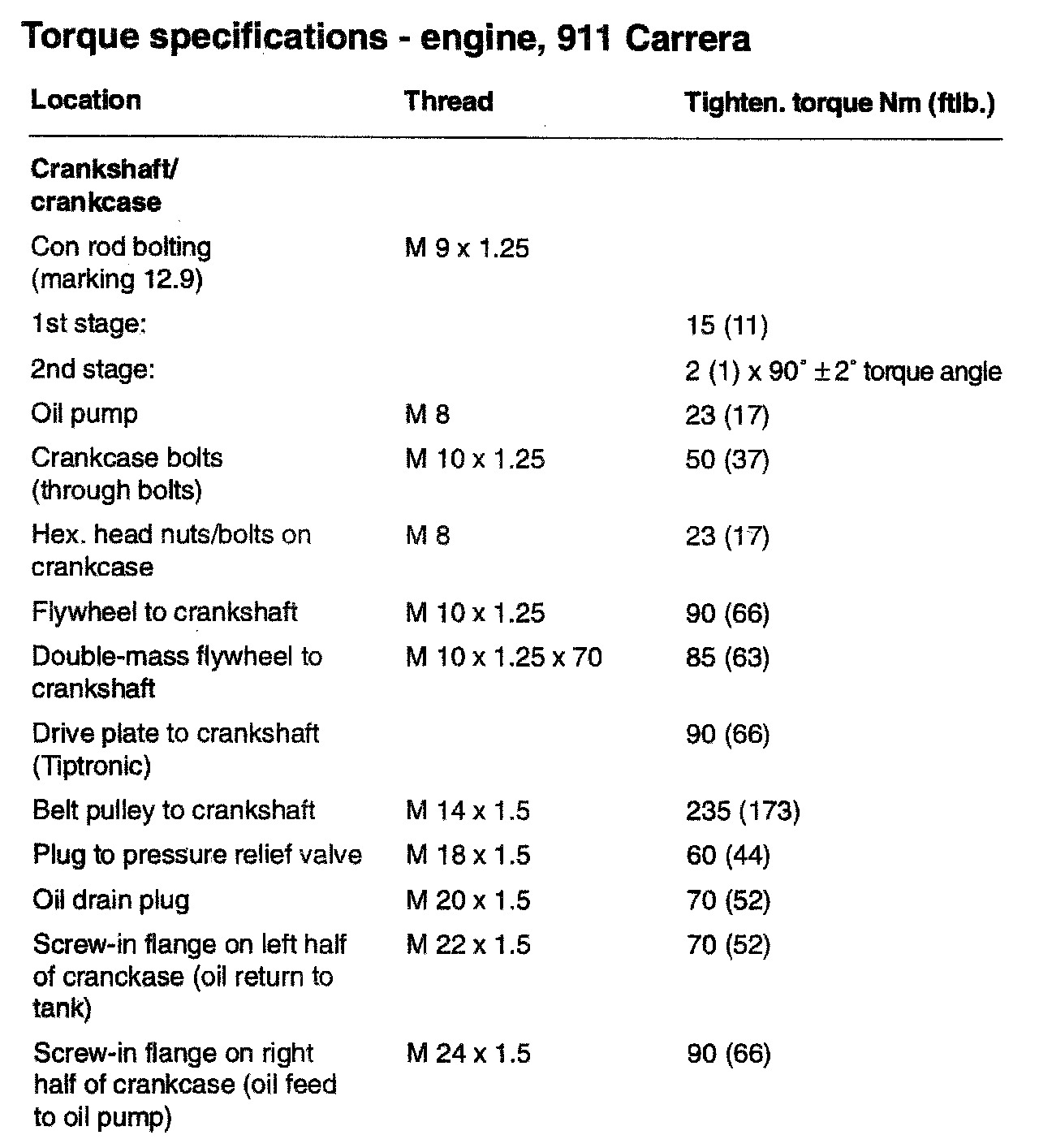 TIGHTENING SPECIFICATIONS