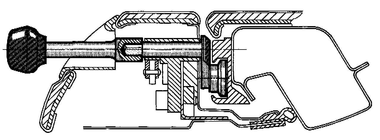 LOCKING UNITIn the event that all the adjustment capabilities for the locking motors or manual locking system in the roof frame are exhausted, the sliding block guides in the windshield frame can be appropriately adjusted.