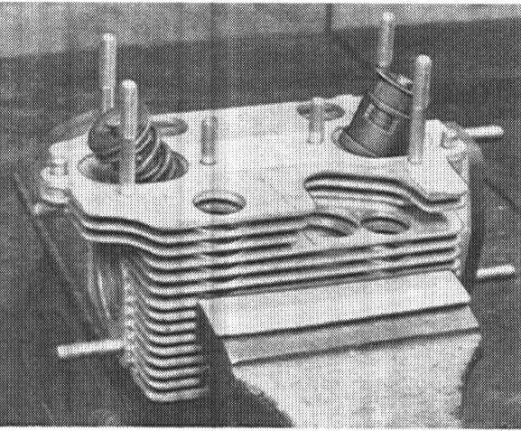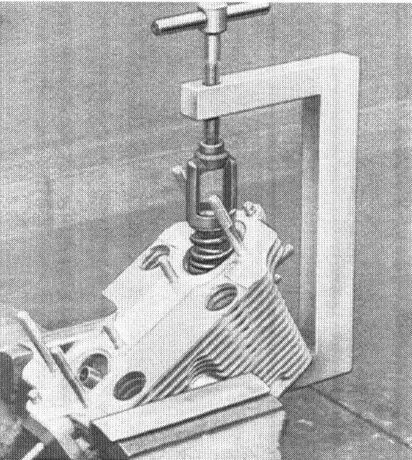 1. Install Special Tool P 10 c with shims belonging to a pertinent valve, spring retainer, spring disc and both keepers.
