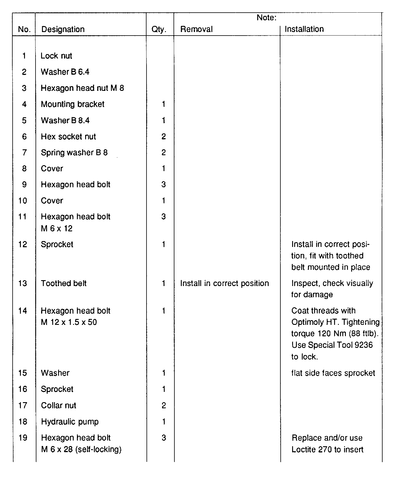 Dismantling and Assembling Hydraulic Pump Drive (power steering)