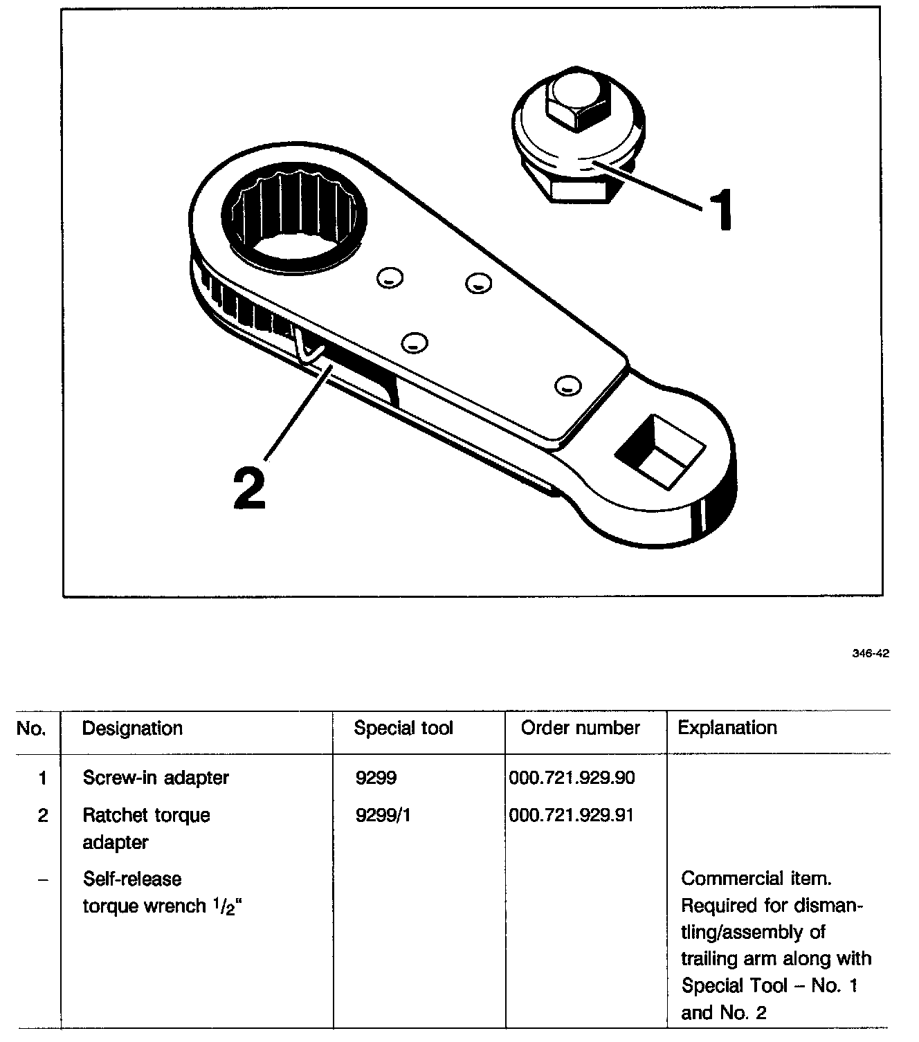 6. On the 911 Carrera with Tiptronic, disconnect connector at transmission. Remove pan head screw with Special Tools 9299 and 9299/1 (no. 1/no. 2) in conjunction with a torque wrench (arrow).